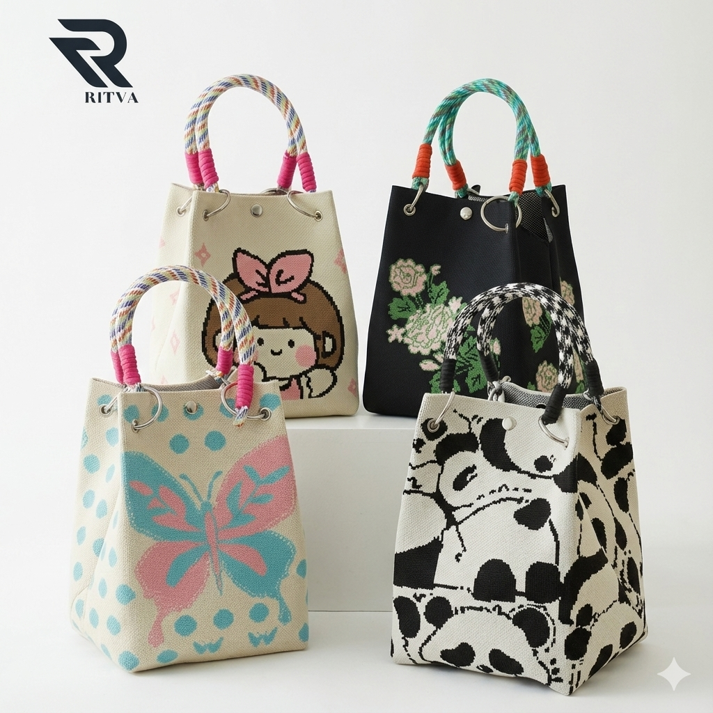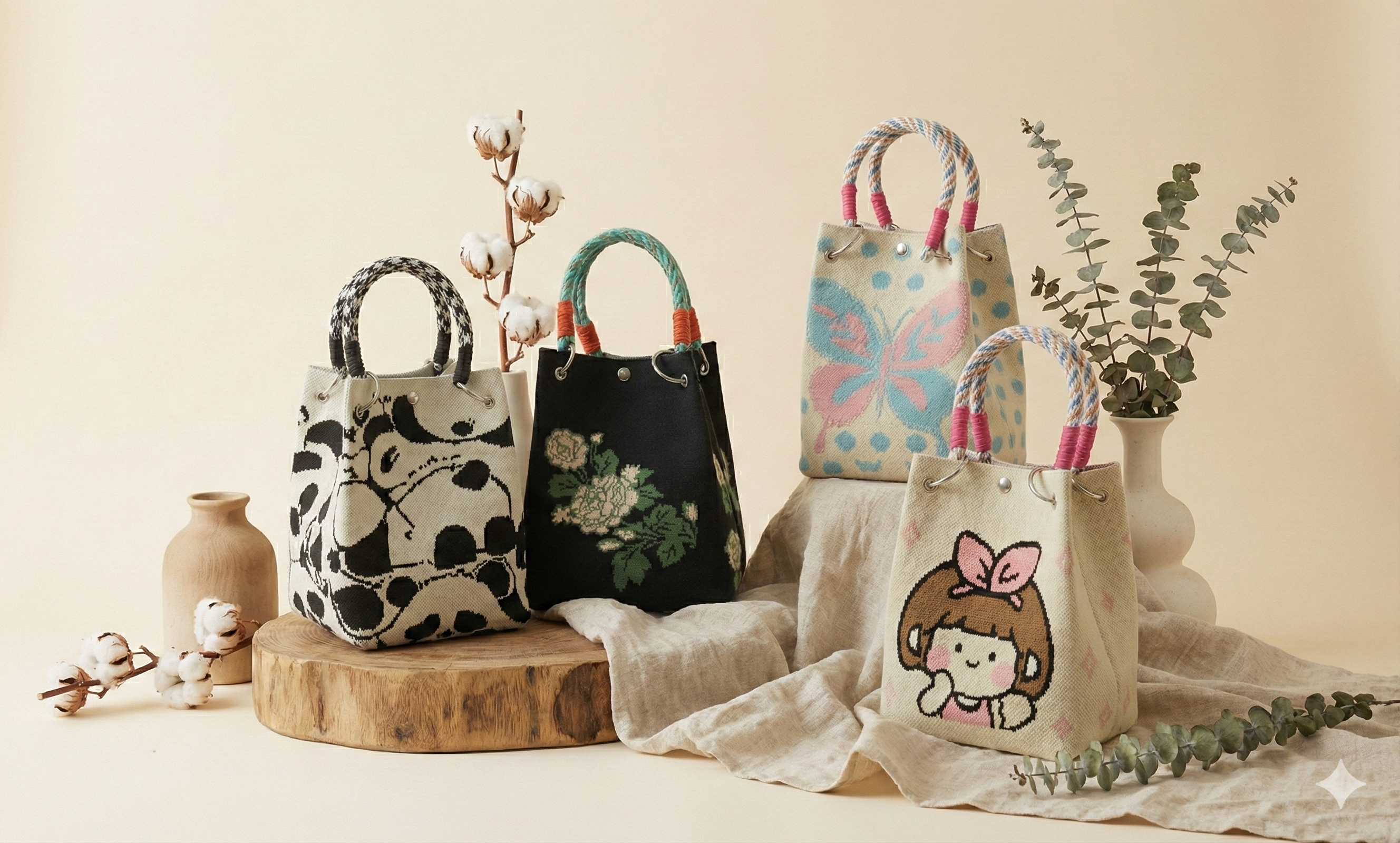Ritva - Classic Panda Pattern Knitted Tote Bag