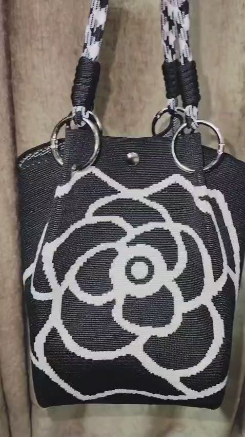 Ritva – Noir Rose Elegance Knitted Tote Bag